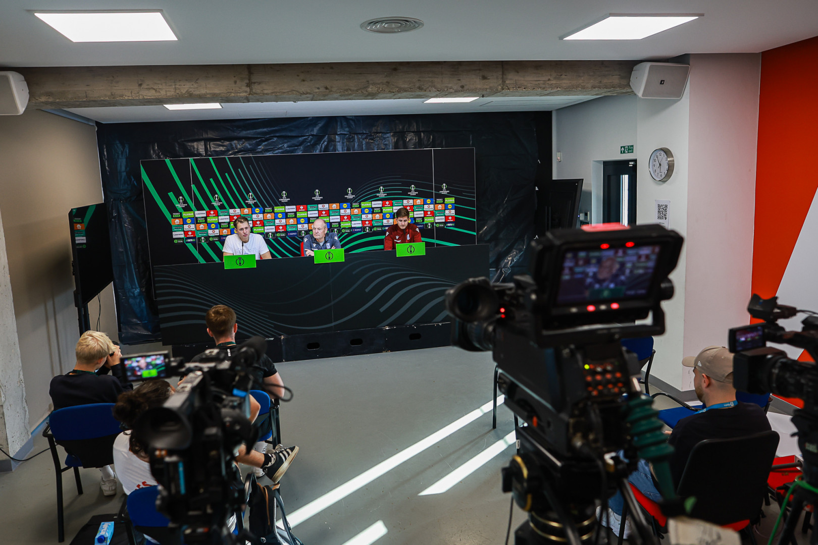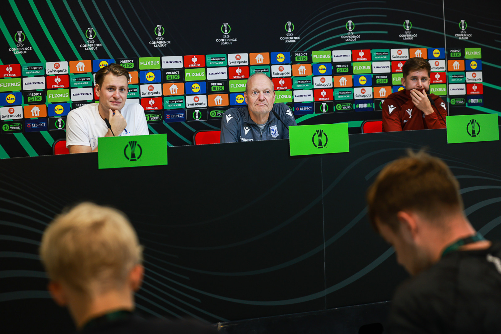 O godzinie 18:00 rozpoczęła się konferencja prasowa z trenerem Nielsem Frederiksenem oraz Leo Bengtssonem, podczas której lechici odpowiadali na pytania dotyczące czwartkowego rywala czy sytuacji kadrowej.