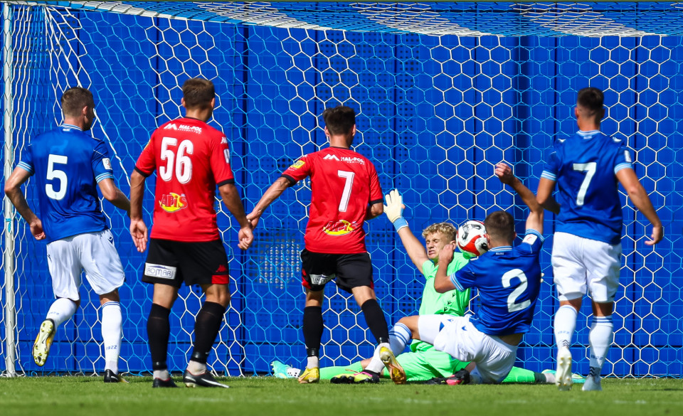 Piłkarze trenera Artura Węski starali się spokojnie budować swój atak pozycyjny. Po ich najładniejszej akcji przed przerwą i dograniu aktywnego Kornela Lismana do Norberta Pacławskiego oraz wrzutce napastnika, Szymon Pawłowski został zablokowany. Obraz gry zmienił gol dla gości, który padł po tym, jak graczom Kolejorza przytrafiła się druga w ciągu 120 sekund strata w środku boiska. Zostało to bezlitośnie wykorzystane, bo piłka trafiła do Damiana Szuprytowskiego, który z prawej strony zbiegł do środka, wpadł w szesnastkę odważnie między dwójkę przeciwników i kiedy miał przed sobą tylko bramkarza, to przerzucił nad nim piłkę wprost do siatki.