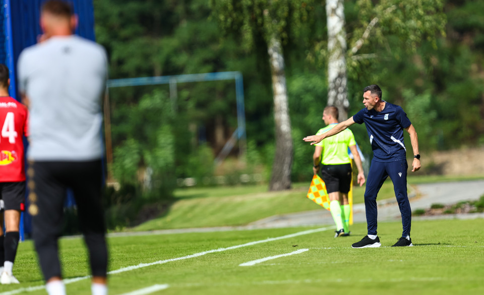 Mecz rezerw w niedzielne południe był idealną przystawką przed derbami Poznania w Ekstraklasie. We Wronkach mieliśmy starcie sąsiadów ze środka drugoligowej tabeli. Lechici ostatnio są w niezłej formie - wygrali dwa razy z rzędu, a w poprzednich pięciu kolejkach wywalczyli 10 punktów. To wskazywało, że będziemy świadkami wyrównanego starcia - niestety, wyszło zupełnie inaczej. Trzeba jednak przyznać, że inicjatywa od początku była po stronie gości z Siedlec. Choć w pierwszym kwadransie, jeśli było zagrożenie, to głównie po stałych fragmentach gry i dośrodkowaniach. Ze strony gospodarzy głową kierował piłkę w stronę bramki Maciej Wichtowski, ale obrońca dobrze interweniował na linii. Z drugiej strony Mateusz Pruchniewski złapał futbolówkę po uderzeniu Roberta Majewskiego, a raz mu pomógł rykoszet. 16-letni golkiper znów był mocnym punktem swojej drużyny.