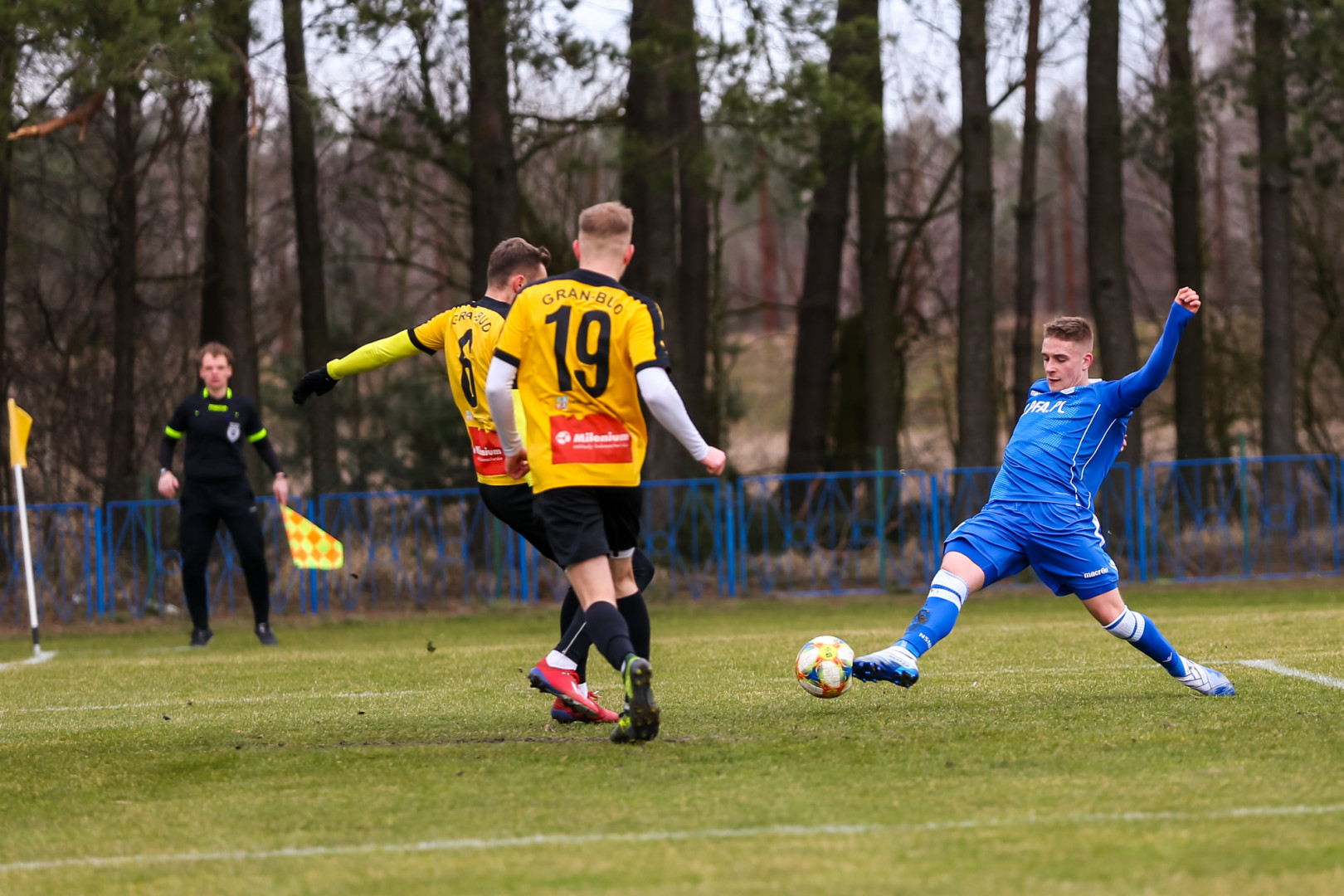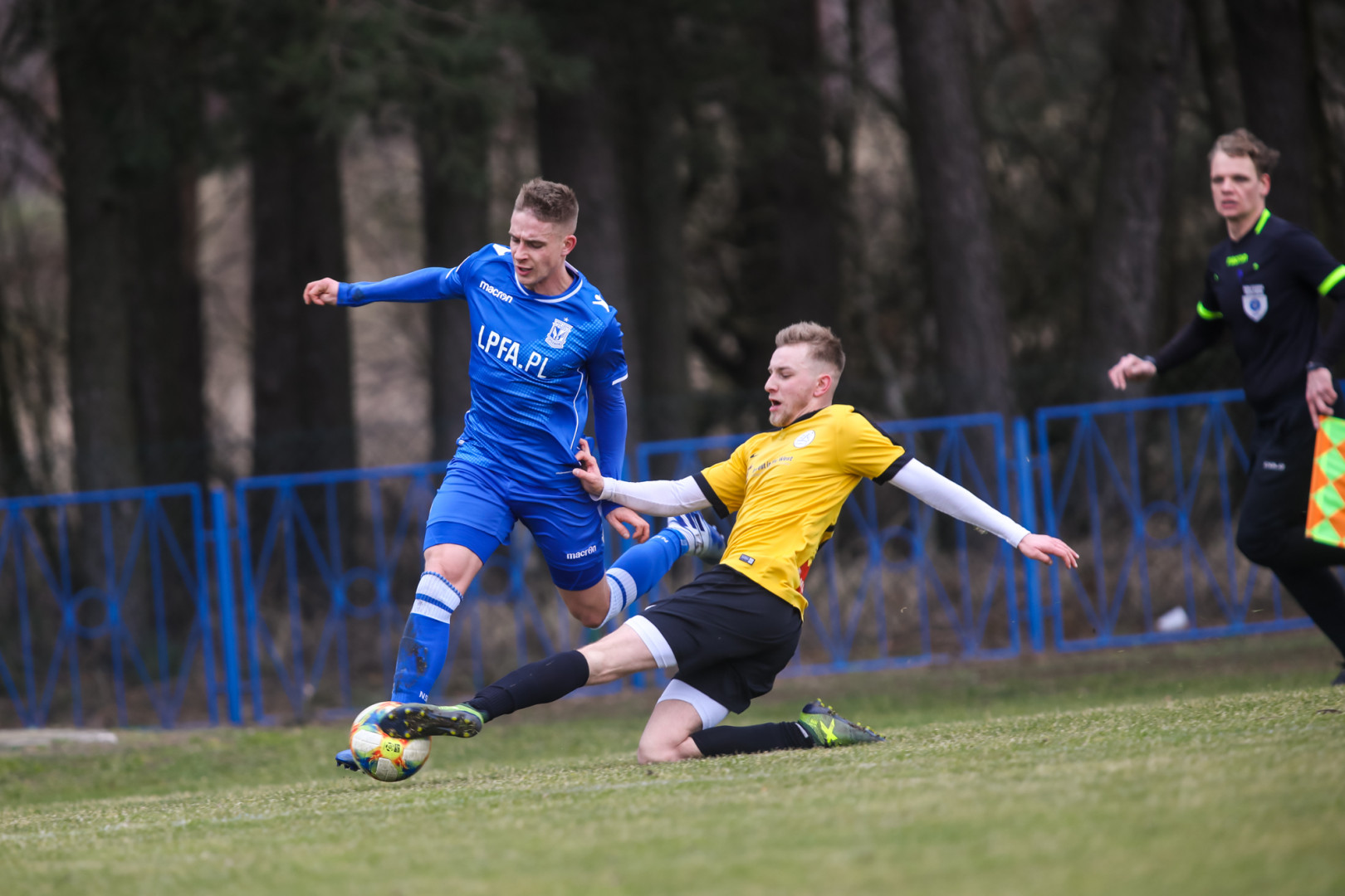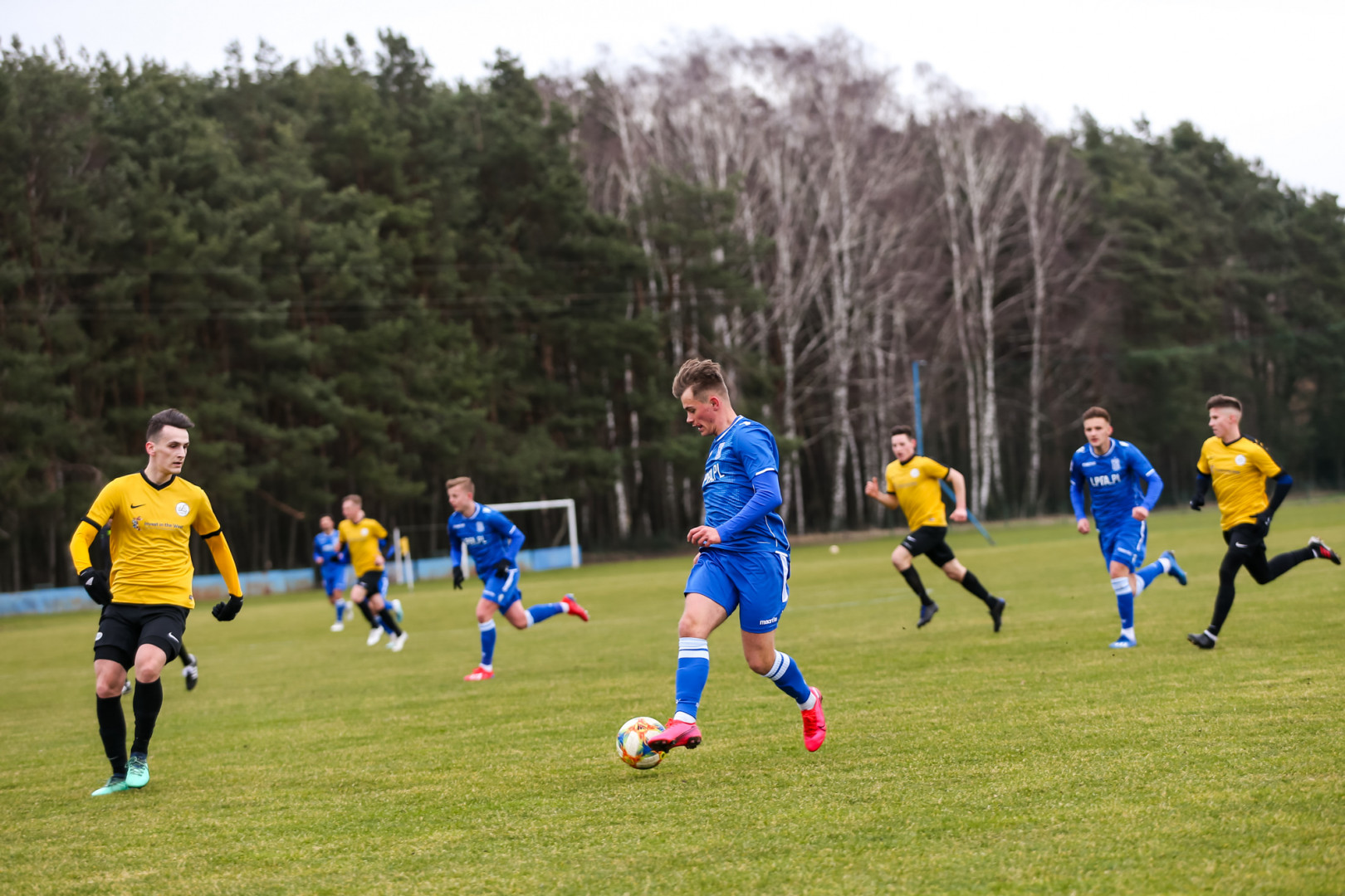 Ten należał do nieco zaskakujących, ponieważ to przyjezdni mocniej zaatakowali od pierwszych minut. Po krótkim okresie ich przewagi niebiesko-biali przejęli kontrolę nad boiskowymi wydarzeniami i rozpoczęli festiwal strzelecki. Wynik otworzył po centrze z rzutu rożnego Grzegorz Wojtkowiak, a podwyższył go po pięknym strzale Jakub Karbownik. Przy obu golach w rolę asystenta wcielił się rozgrywający Bartosz Bartkowiak.