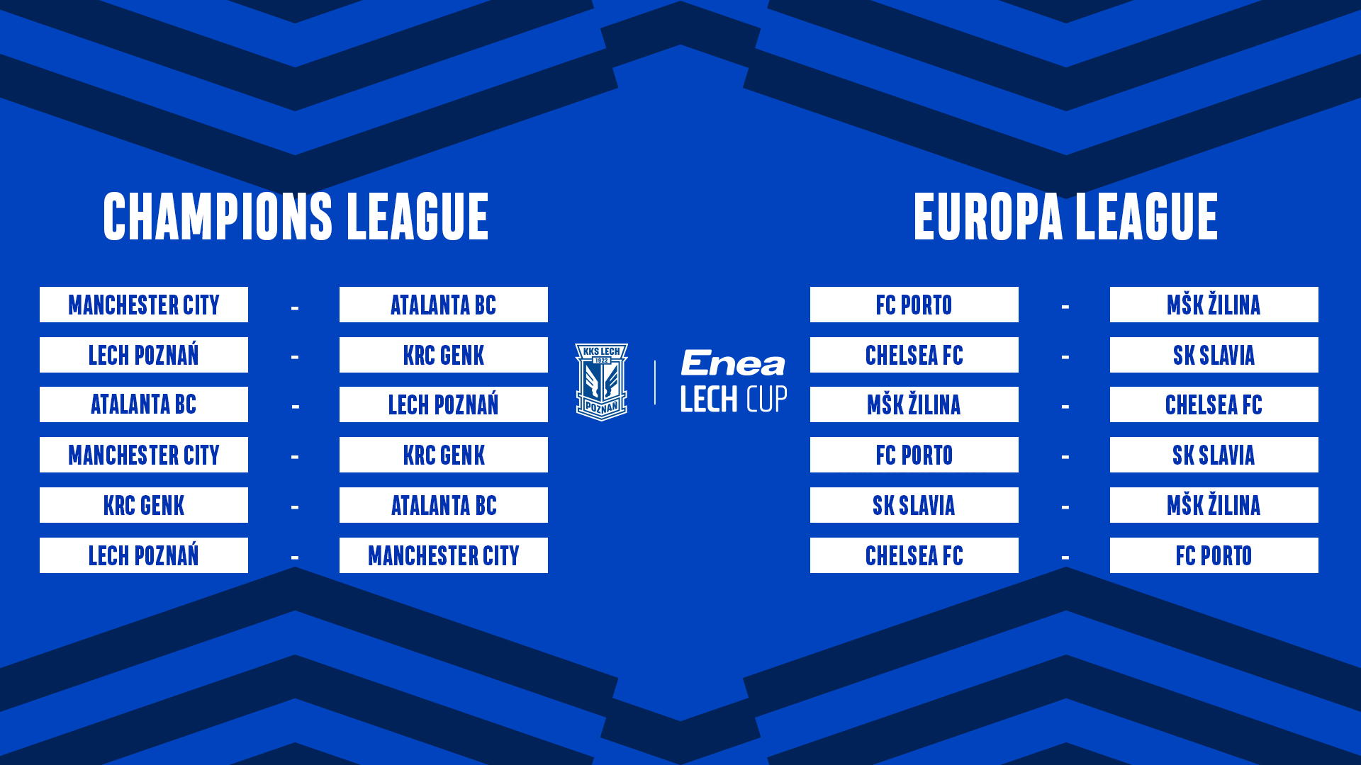 Podrzucamy dwa kolejne wyniki, bo sytuacja na Enea Lech Cup rozkręca się dosłownie z minuty na minutę! Jak na razie bezbłędne pozostają Manchester City i KRC Genk, za ich plecami z sześciomka punktami Kolejorz oraz włoska Atalanta, a w drugiej połowie stawki plasują się FC Porto, Chelsea FC, Slavia Praga i MSK Żilina.