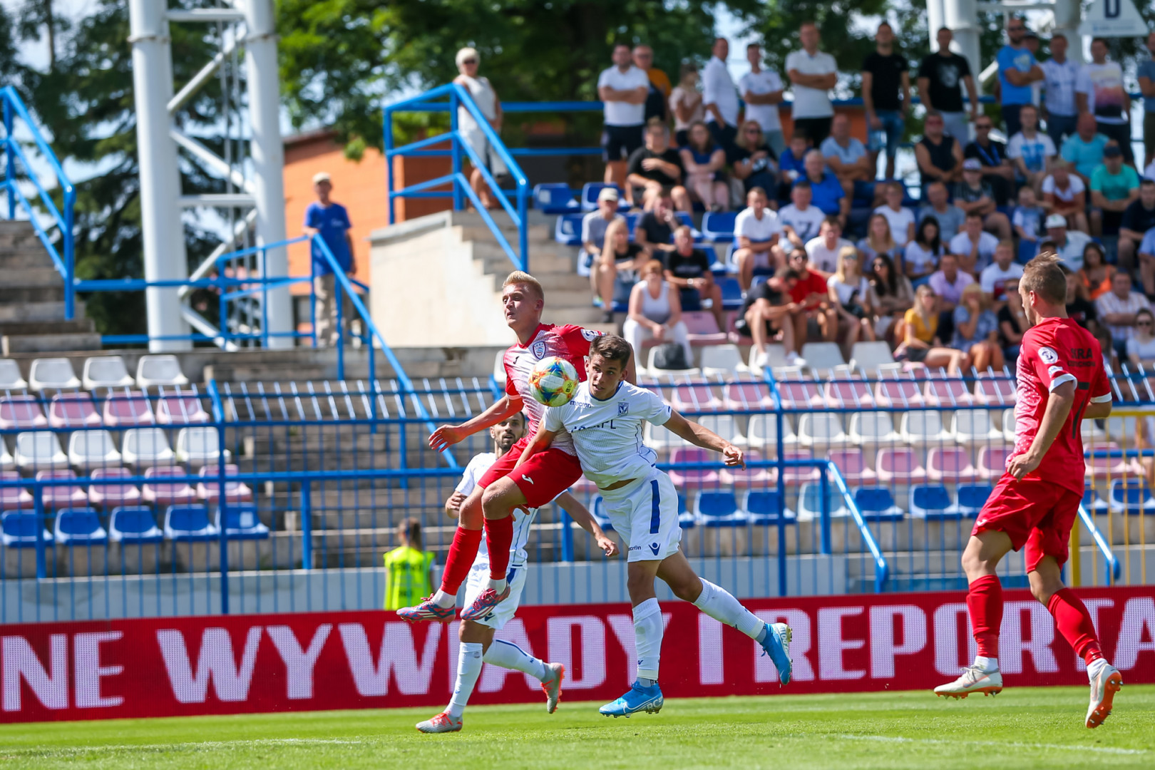 Jeszcze przed przerwą na skraju pola karnego faulowany był Filip Marchwiński. Do piłki podszedł Jakub Moder, ale jego uderzenie powędrowało nad poprzeczką bramki strzeżonej przez Biegańskiego. W doliczonym czasie gry pierwszej części spotkania znowu groźnie główkował "Marchewa", ale jego strzał wybronił golkiper gości. Wynik po 45. minutach zdecydowanie oddawał to co działo się na boisku.