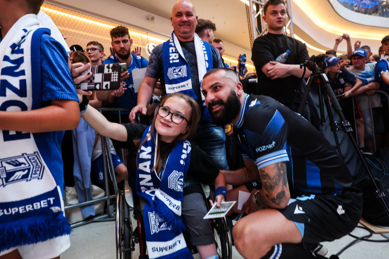 Na początek przed niebiesko-białymi kibicami wystąpił Poznański Chór Projektowy, który na żywo i w nieco odświeżonej aranżacji wykonał hymn Kolejorza. Po chwili na ekranie pojawiło się się podsumowanie ostatniego sezonu przygotowane przez chłopaków z klubowej telewizji, a później zgromadzeni w galerii Posnania mogli wziąć udział w quizie. Dalej miała miejsce specjalna oprawa - kibice stworzyli niebiesko-białą oprawę z gigantyczną koszulką meczową, którą przygotowaliśmy we współpracy ze Sponsorem Strategicznym Kolejorza, firmą Superbet.