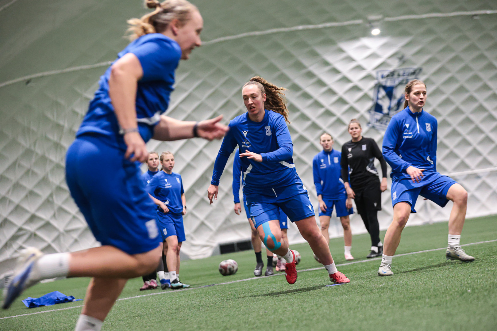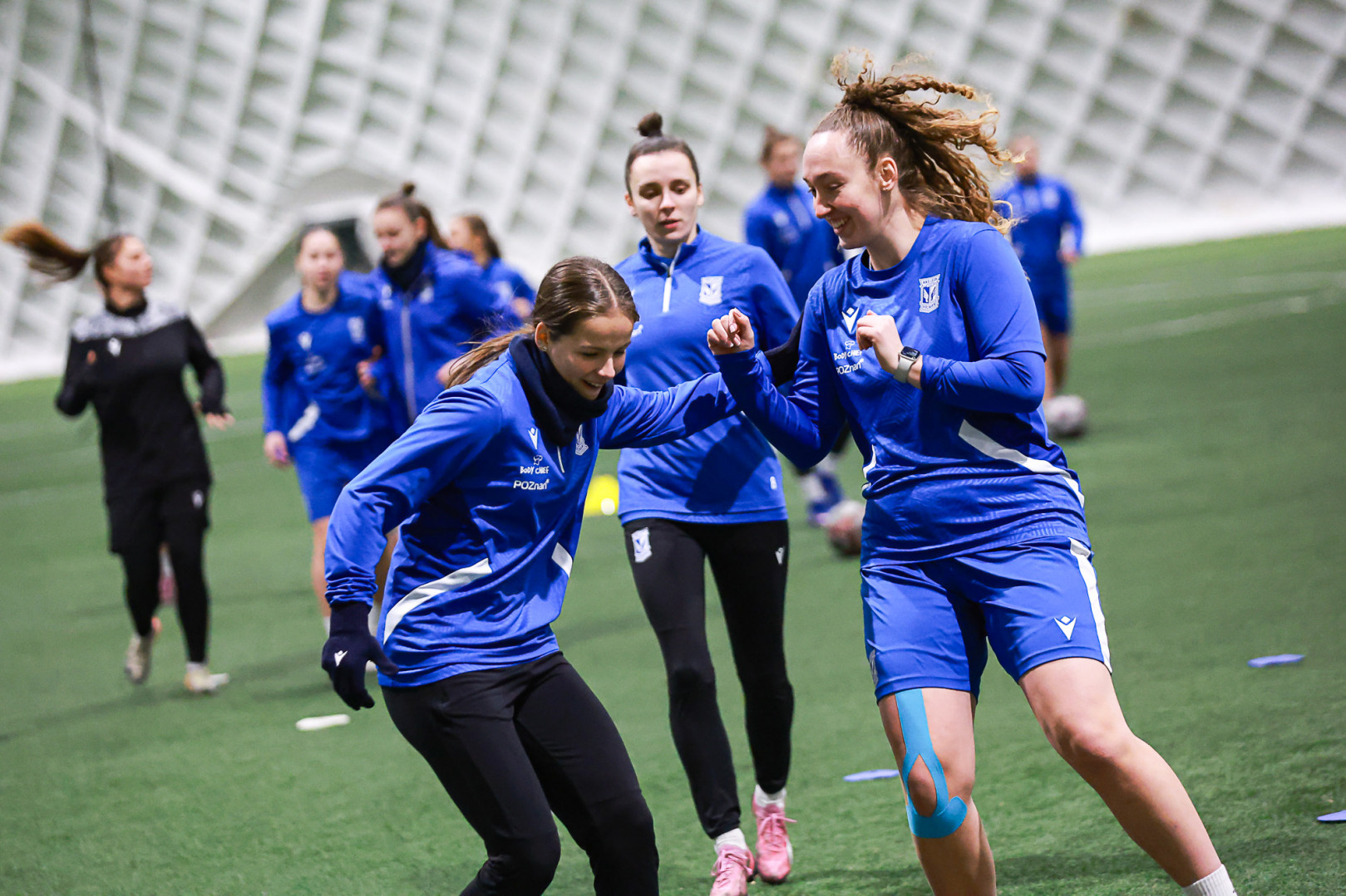 Piłkarki Kolejorza po dwóch tygodniach treningów pojechały do Wronek, aby na obiektach Akademii Lecha Poznań przygotowywać się do rundy wiosennej. Niebiesko-Białe odbywają treningi na boisku pod balonem, a do ich dyspozycji jest również klubowa siłownia oraz skills.lab. - Warunki mamy świetne i cieszymy się, że mamy możliwość z tych wszystkich dogodności korzystać oraz pracować więcej niż mamy na to czas w zwykłym tygodniu. Byliśmy po dwóch tygodniach ciężkiej pracy i pod kątem fizycznym nie mogliśmy przesadzić. Myślę, że takim podsumowaniem będzie mecz kontrolny z Polonią Środa Wielkopolska. Sprawdzimy czy to nad czym pracowaliśmy po prostu działa – mówi trenerka Alicja Zając.