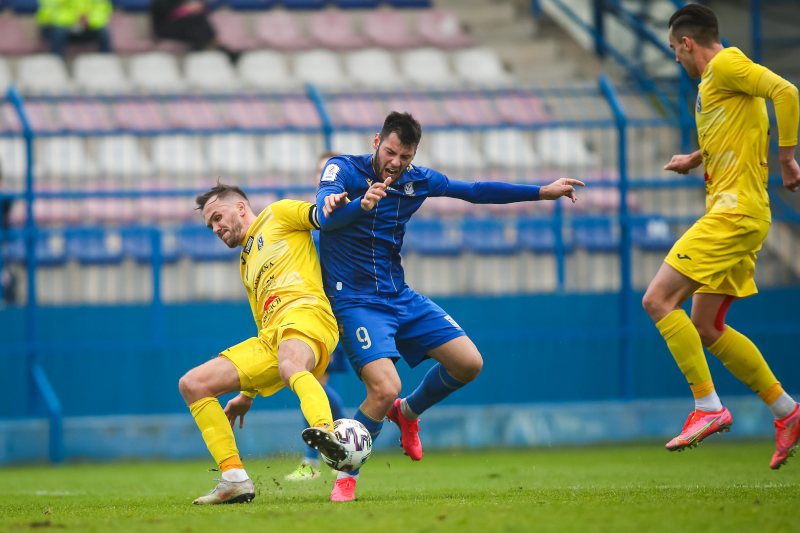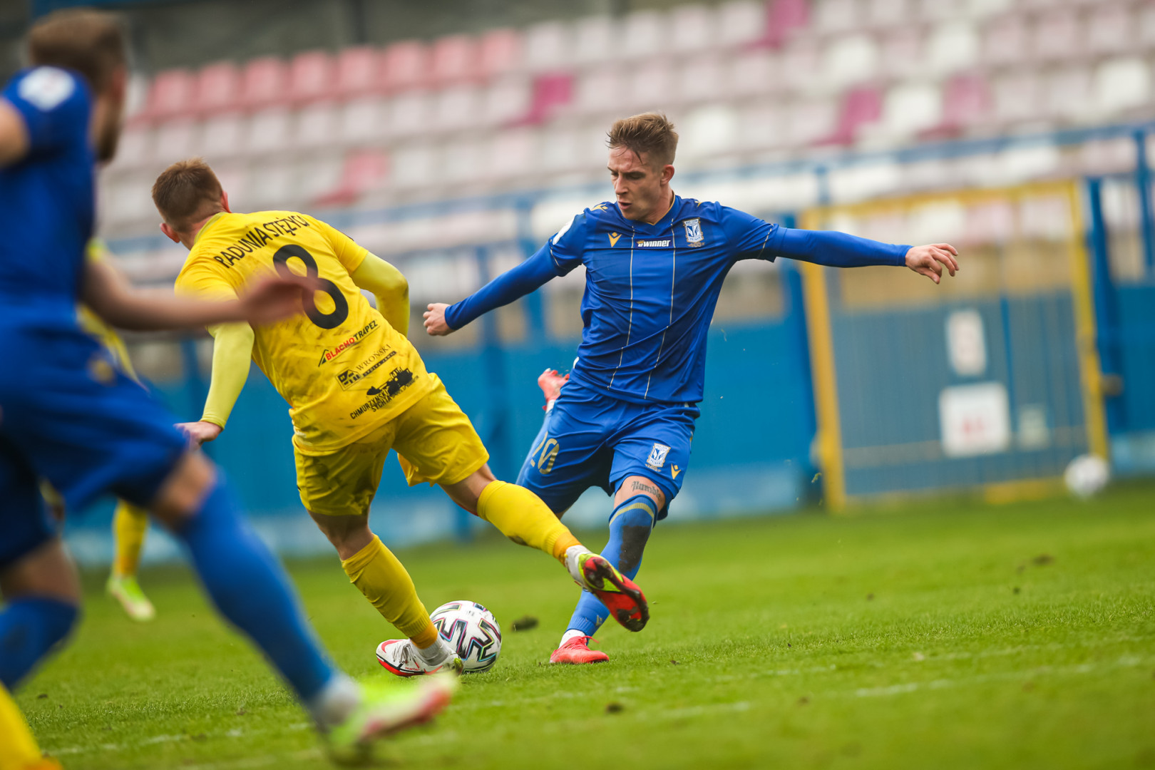 Obie drużyny stawiały głównie na ofensywę, dzięki czemu mogliśmy oglądać otwarte spotkanie. Gra toczyła się od jednej bramki do drugiej. W 37. minucie Sergey Krivets świetnym prostopadłym podaniem wypatrzył Michała Skórasia, skrzydłowy minął golkpiera gości, ale jego strzał z ostrego kąta przeciął jeden z obrońców Raduni. Młodzieżowy reprezentant Polski pod koniec pierwszej połowy miał jeszcze jedną sytuację, lecz niecelnie uderzył głową z jedenastu metrów. Do szatni zespoły schodziły przy bezbramkowym wyniku.