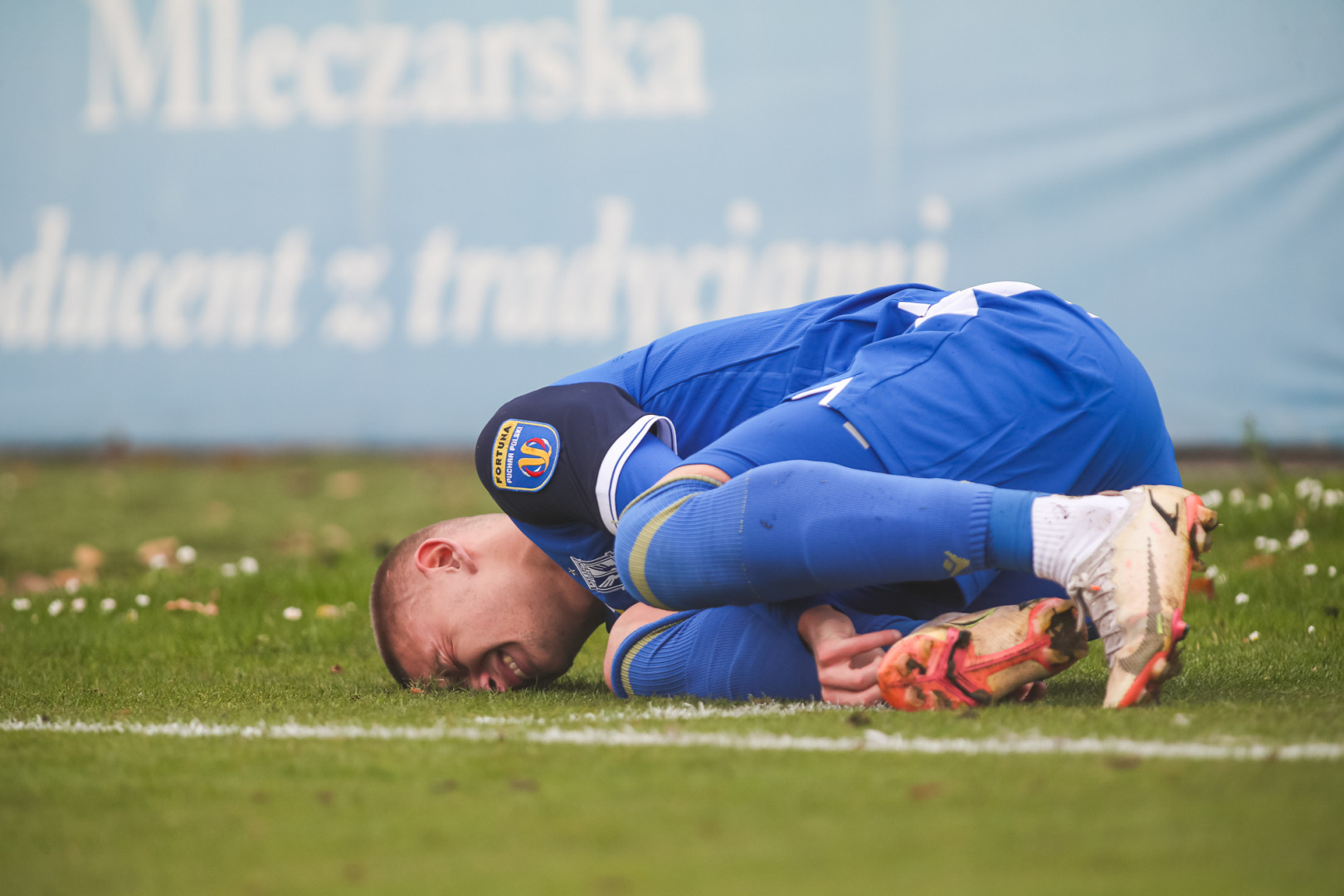 Po zmianie stron niebiesko-biali ruszyli do zdecydowanych ataków i to zaowocowało szansą Krystiana Palacza. Lewy obrońca otrzymał podanie w okolicach dwunastego metra od bramki przeciwnika, ale posłał piłkę nad poprzeczką. Po chwili znowu zrobiło się groźnie w polu karnym Olimpii, ale tym razem nikt nie doszedł do płaskiego dogrania autorstwa Palacza. Podopieczni trenera Węski napędzali się z każdą minutą i wyraźnie dążyli do trafienia kontaktowego, brakowało im jednak ostatniego podania i Olimpia dawała sobie radę z ich kolejnymi próbami.