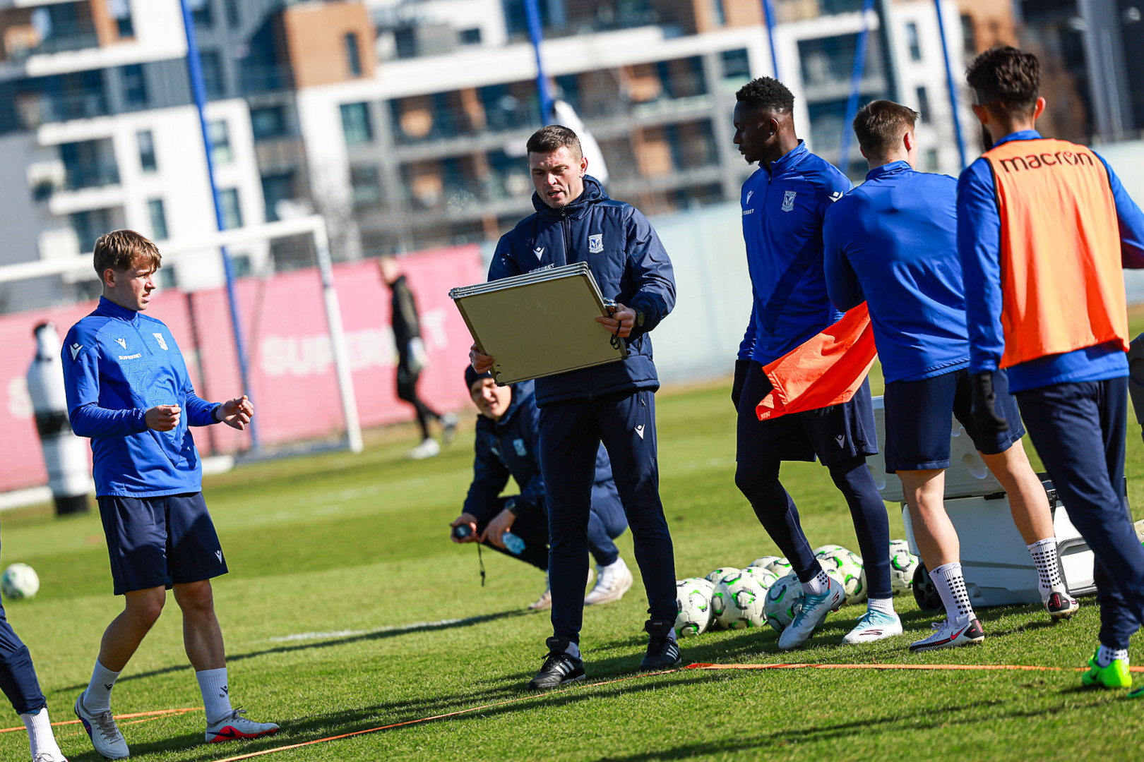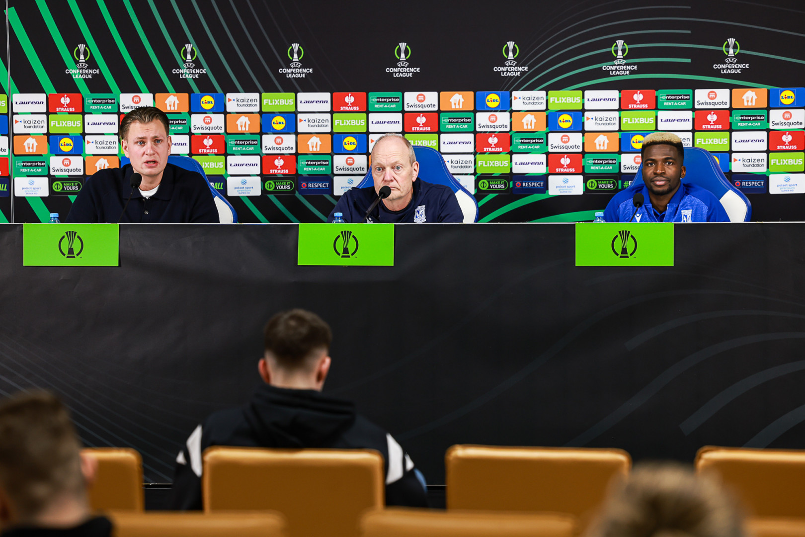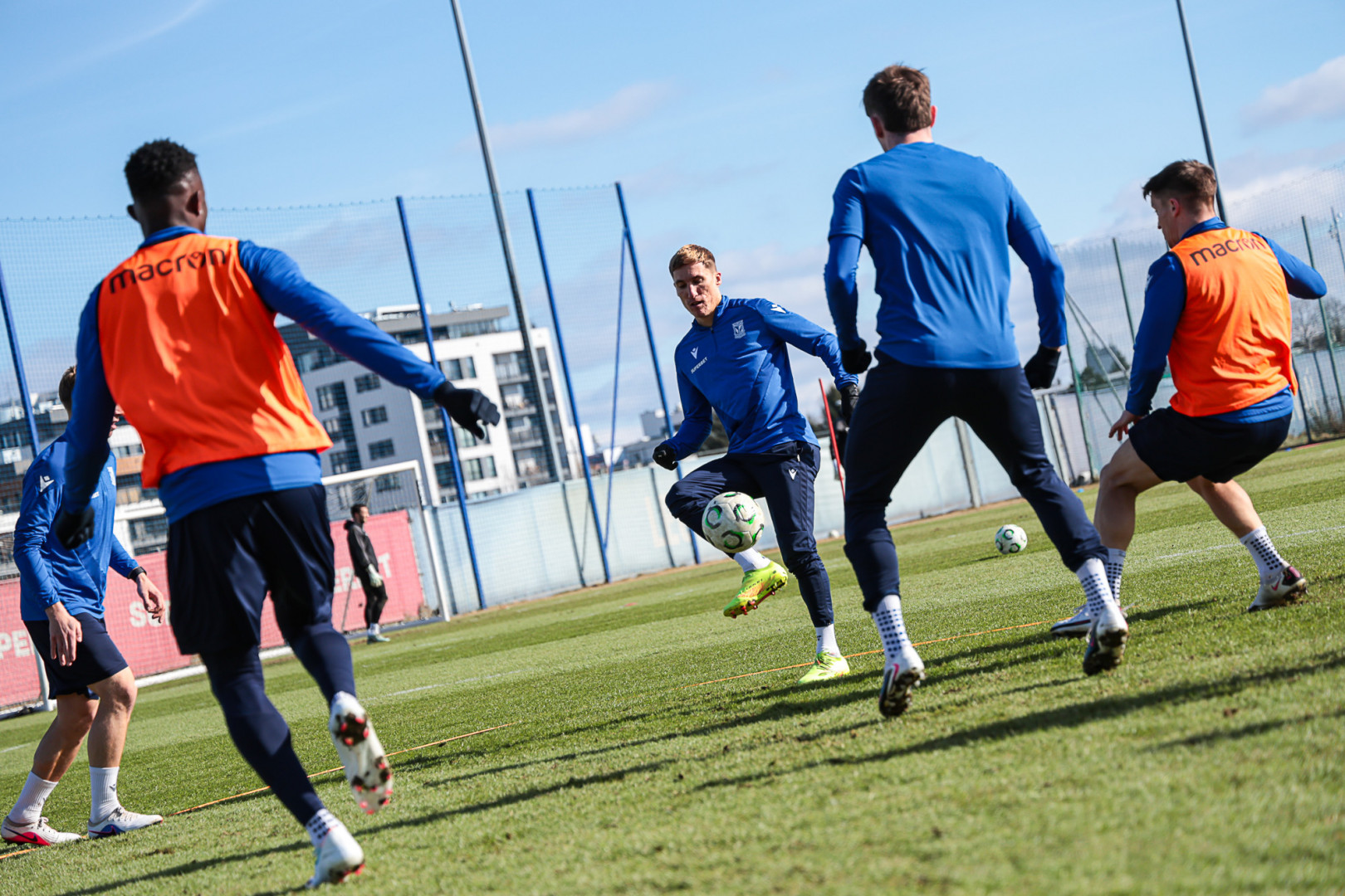 Chwilę po godzinie 11:00 Niebiesko-Biali wyszli na boczne boisko Enea Stadionu i odbyli blisko godzinną jednostkę treningową, która przez piętnaście minut była otwarta dla przedstawicieli mediów. W zajęciach udziału nie wziął jedynie Filip Jagiełło, który z zajęć wyłączony jest na około tydzień. Kilkadziesiąt minut później, bo o 12:45 rozpoczęła się z kolei konferencja prasowa z udziałem trenera Nielsa Frederiksena i Taofeeka Ismaheela, podczas której lechici odpowiadali na pytania dotyczące rewanżowego meczu Ligi Konferencji czy sytuacji kadrowej.