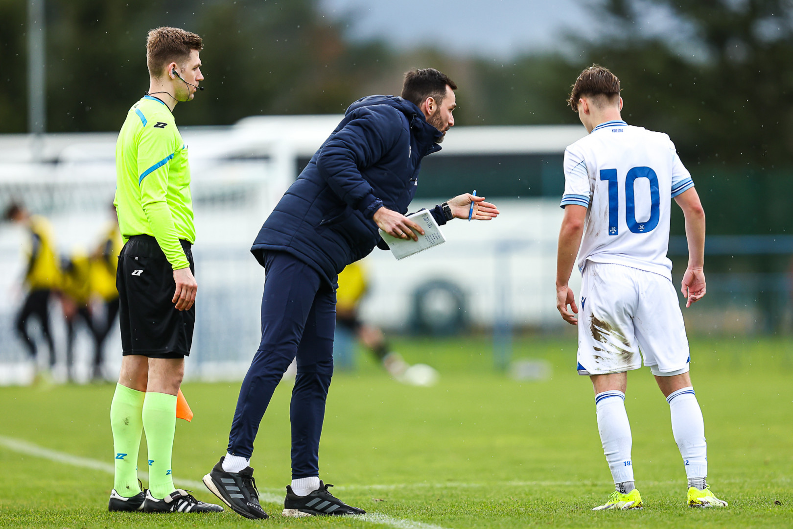 - To był mecz, w którym ta nasza młodzież mogła doświadczyć po raz kolejny, że trzeba szybko dojrzewać, szybko podejmować decyzje, być odważnym. Jak taki rytm złapaliśmy i spełniliśmy te warunki w drugiej połowie, to wcale to spotkanie nie musiało zakończyć się wynikiem 0:0. Przede wszystkim w pierwszej połowie brakowało takiego zdecydowania w walce bardzo bezpośredniej z dobrze przygotowanym fizycznie przeciwnikiem. To są mecze potrzebne naszym chłopakom do tego, żeby dojrzewać i rozwijać się. Liczę, że te doświadczenia szybko przekują w większą skuteczność działań na boisku. Pracujemy dalej i mamy nadzieję, że po następnym spotkaniu będziemy cieszyć się z trzech punktów – mówi trener Bartosz Bochiński.