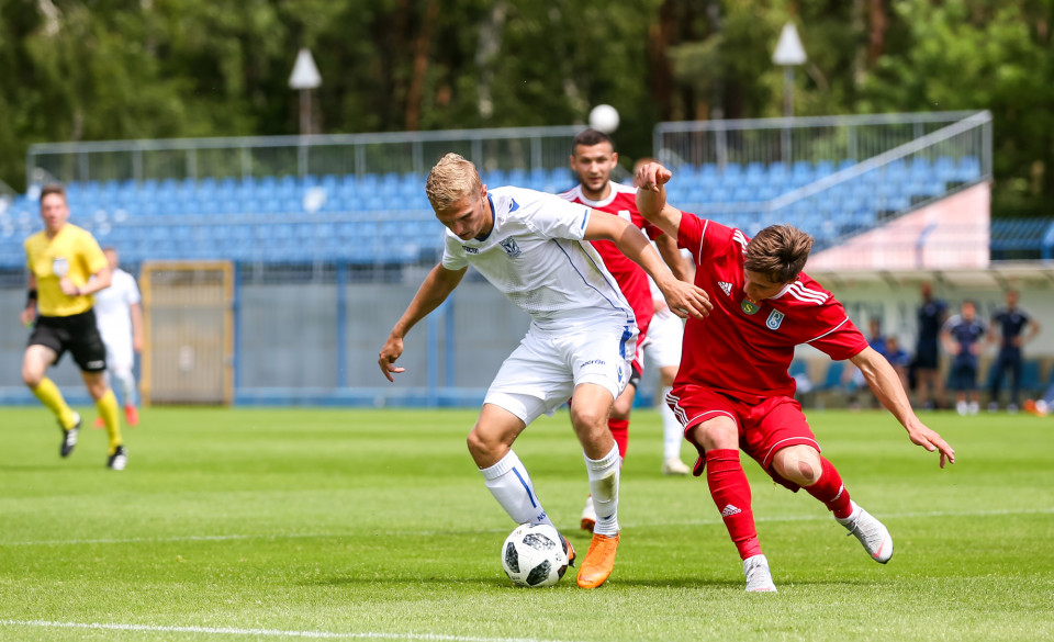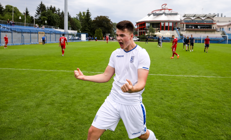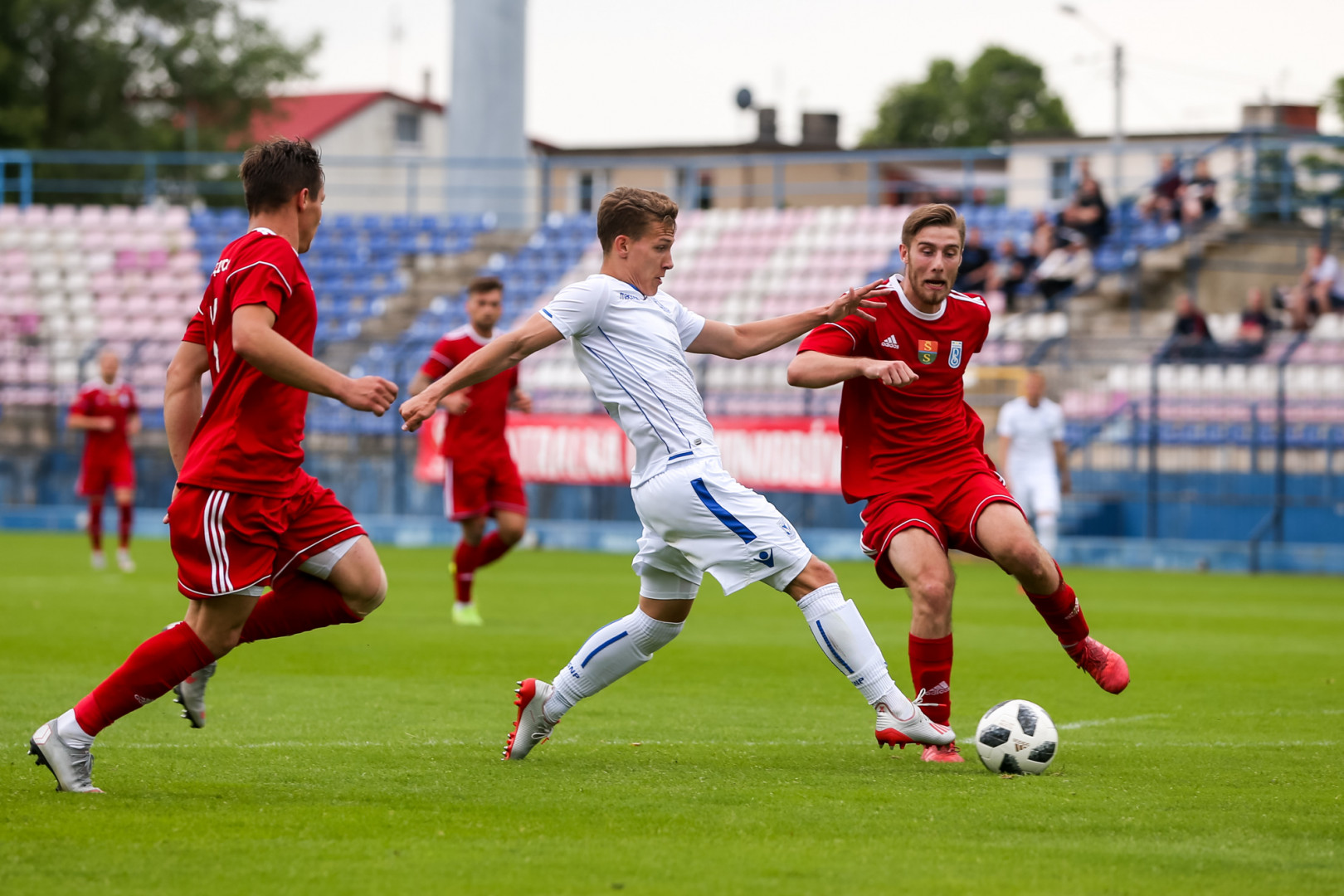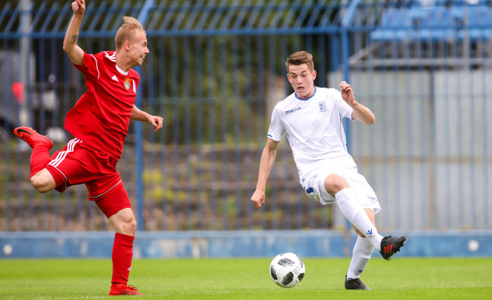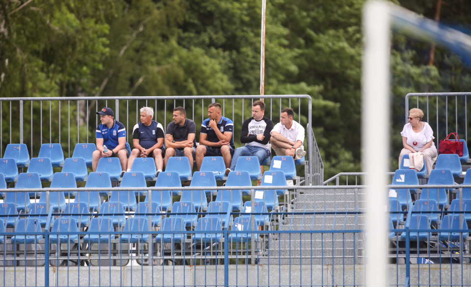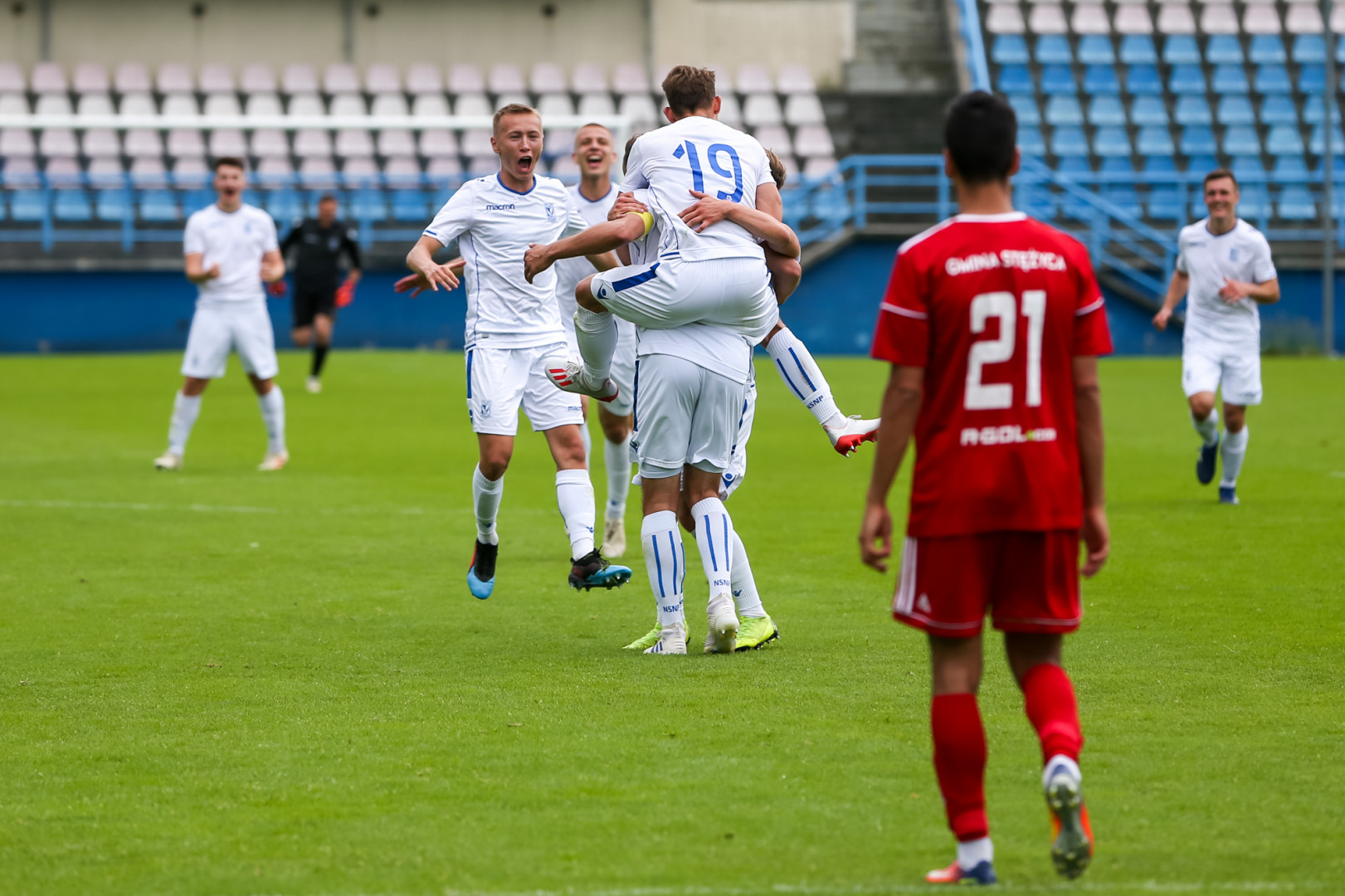 W końcu nadeszła 29. minuta, która przyniosła otwarcie wyniku. Piłkę przed „szesnastkę” do Krzysztofa Kołodzieja wycofał boczny obrońca, Arkadiusz Kaczmarek. Napastnik podniósł głowę i dostrzegł nieźle ustawionego w lewym sektorze Jakuba Kamińskiego, który bez zastanowienia odegrał do Kołodzieja. Ten uderzył technicznie z lewej nogi, futbolówka trafiła w słupek, plecy bramkarza gości i znalazła drogę do siatki. Mieliśmy 1:0, a położenie rezerw Lecha stało się od tego momentu bardzo komfortowe.