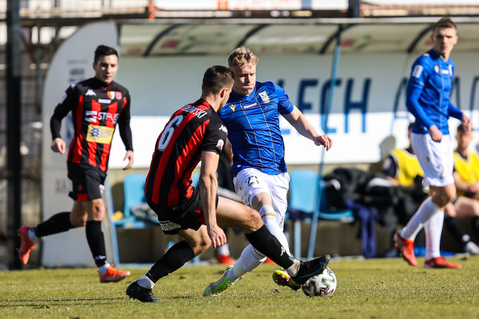 Drużyna z Siedlec to rywal, który lechitom ostatnio nie leży. Trzy poprzednie spotkania obu zespołów zakończyły się porażkami rezerw - kolejno 2:4, 0:2 oraz 0:2. Warto jednak podkreślić, że Pogoń po raz ostatni wygrała 28 listopada, kiedy pokonała we Wrocławiu rezerwy Śląska 2:1 (wiosną trzy punkty dopisali do swojego konta przez to, że GKS Bełchatów wycofał się z rozgrywek). I chociaż początek niedzielnego starcia rozgrywanego we Wronkach wyglądał nieźle dla niebiesko-białych, bo ci starali się szybko odzyskiwać piłkę i przeprowadzać ciekawe akcje, to jednak goście jako pierwsi wyszli na prowadzenie po skutecznym rozegraniu kontrataku.