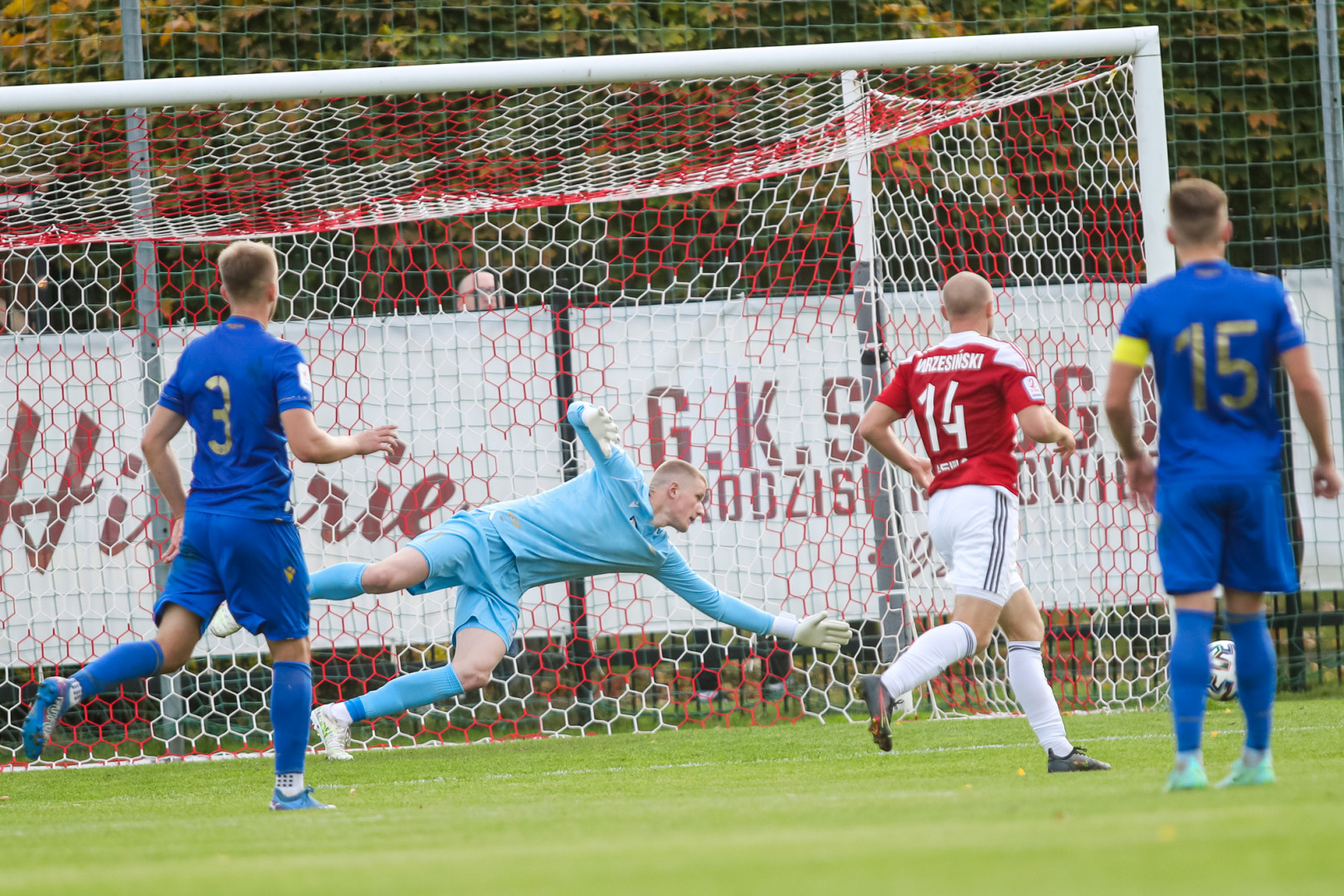 POGOŃ GRODZISK MAZOWIECKI: Artur Haluch - Michał Zimmer, Rafał Zembrowski, Daniel Choroś, Piotr Maślanka - Michał Wrzesiński (63. Kacper Gzieło), Piotr Owczarek (75. Sebastian Kobiera), Jakub Kołaczek, Filip Sobiecki (63. Mateusz Lisowski), Damian Jaroń (75. Wojciech Kalinowski) - Jean Franco Sarmiento (88. Bartłomiej Urbański).