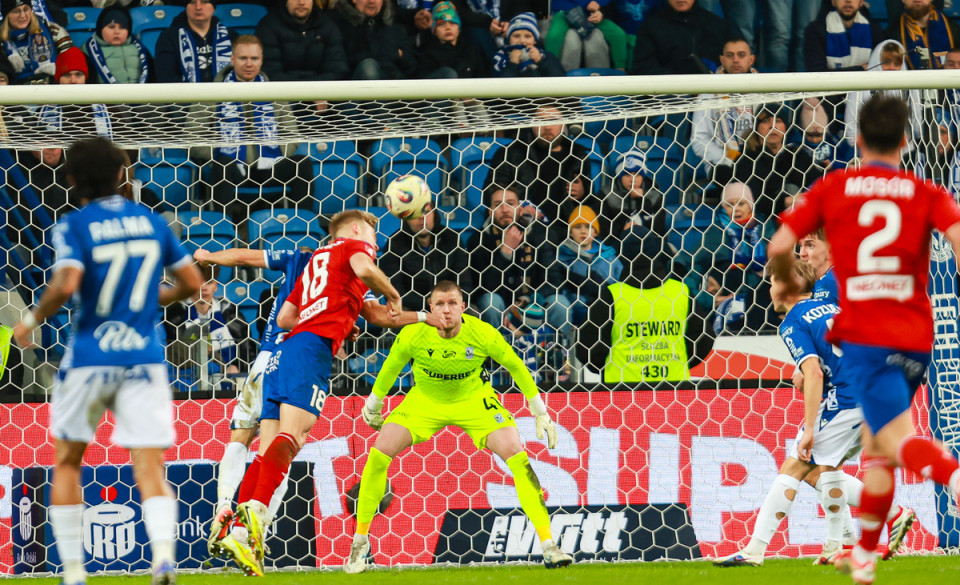 Jednak i goście potwierdzali swoją jakość praktycznie już od pierwszych minut, podczas których dwukrotnie zagrozili bramce strzeżonej przez Adriana Lisa. Golkiper Lecha nie był zmuszony do interwencji, bo zarówno Dawid Retlewski, jak i Aleksander Kubacki obili ten sam słupek, ale obie te akcje stanowiły mocny sygnał ostrzegawczy. Później już inicjatywę przejęli podopieczni szkoleniowca Wojtkowiaka, nadając ton grze i dyktując boiskowe warunki. Przyszła im z tego między innymi seria stałych fragmentów, a po jednym z nich gospodarzom prawdopodobnie należał się rzut karny. Przytrzymywany przez jednego z rywali został starający się dojść do piłki Kamil Jakóbczyk, ale gwizdek arbitra milczał.