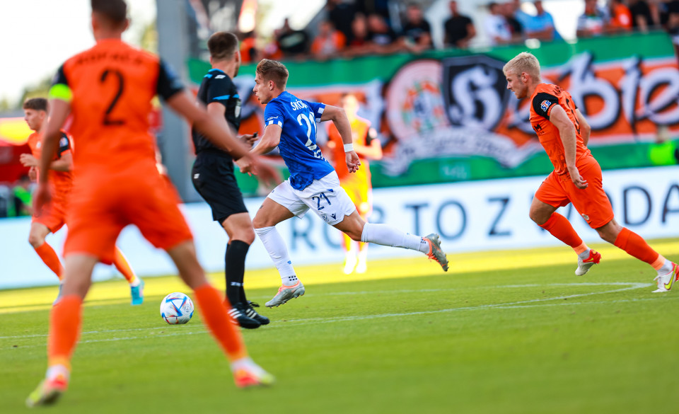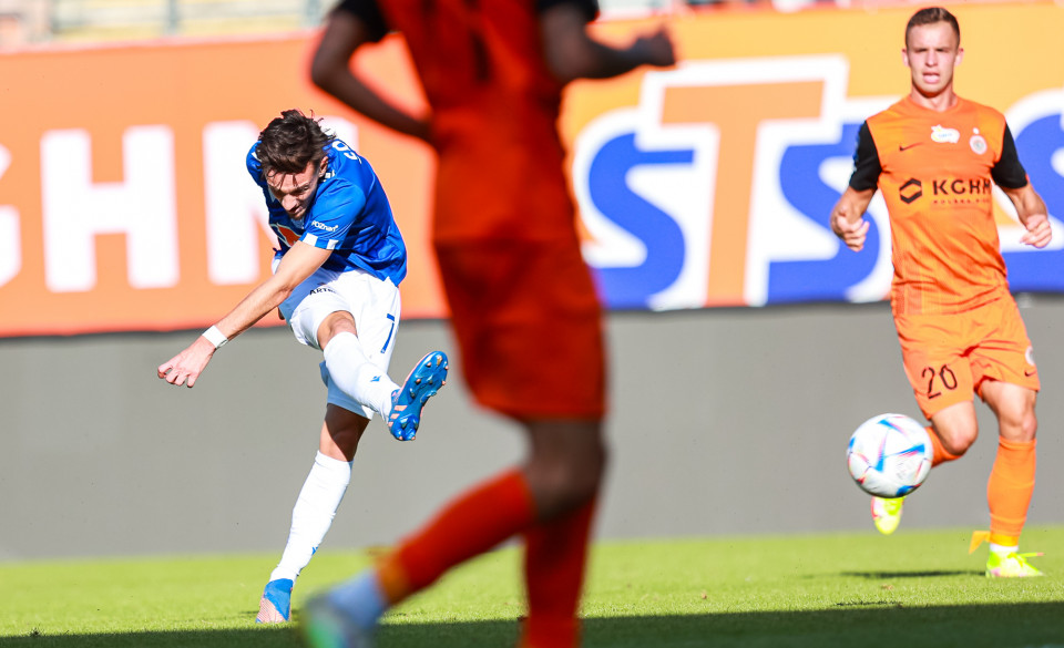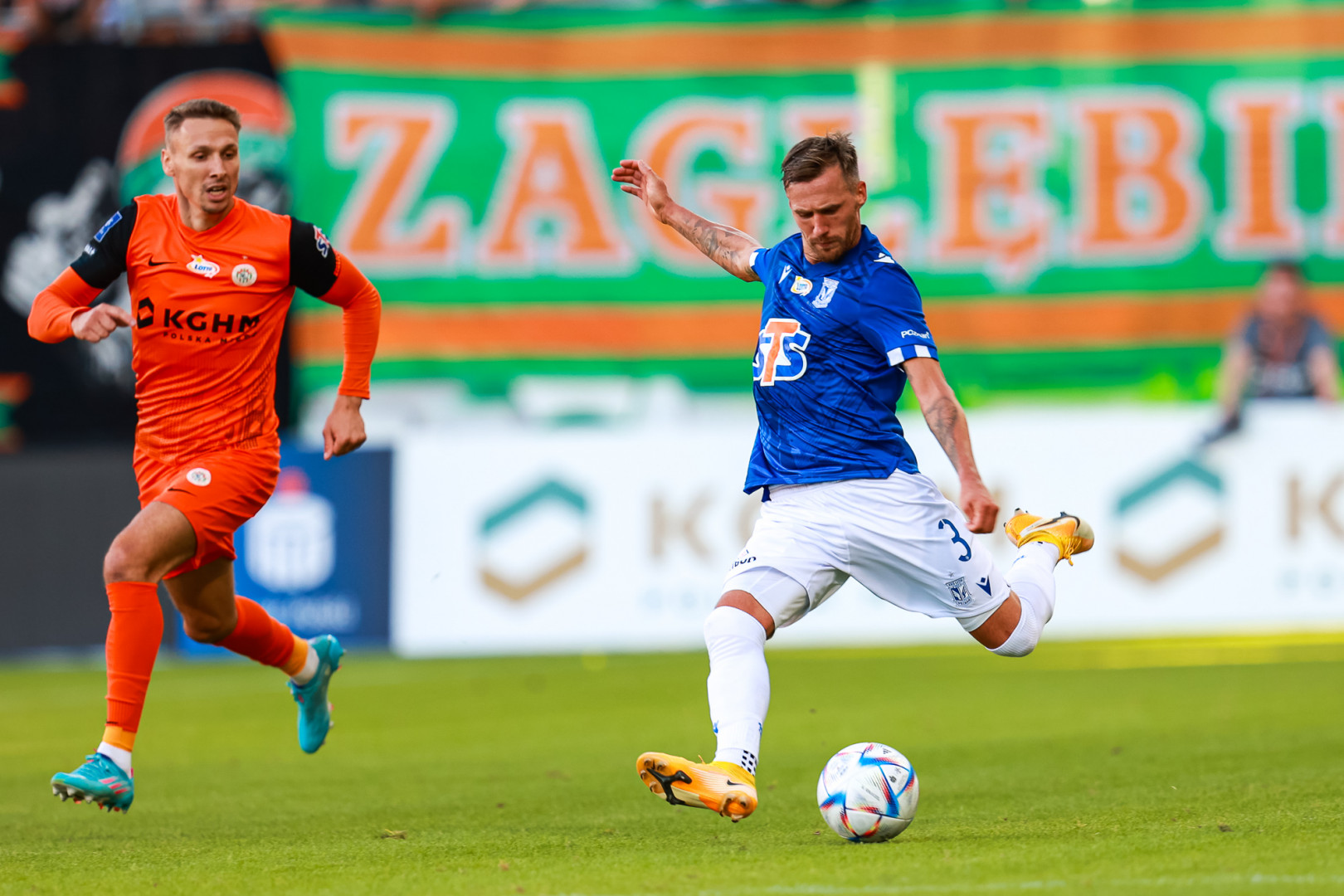 The squad from Poznań faced Zagłębie Lubin following two lost matches in a row – against Wisła Płock (1:3) and Vikingur (0:1). Despite the low morales, Lech managed to stay in possession of the ball for most of the time, however, their domination on the pitch didn’t result in goal-scoring opportunities. On the other end of the pitch, Zagłębie occasionally caused problems for Lech’s defensive line, especially after Filip Starzyński’s crosses. First, Mateusz Bartolewski failed to convert the pass from his teammate into a shot, and then Martin Doleżal’s header that followed Starzyński’s cross into the box was off target.