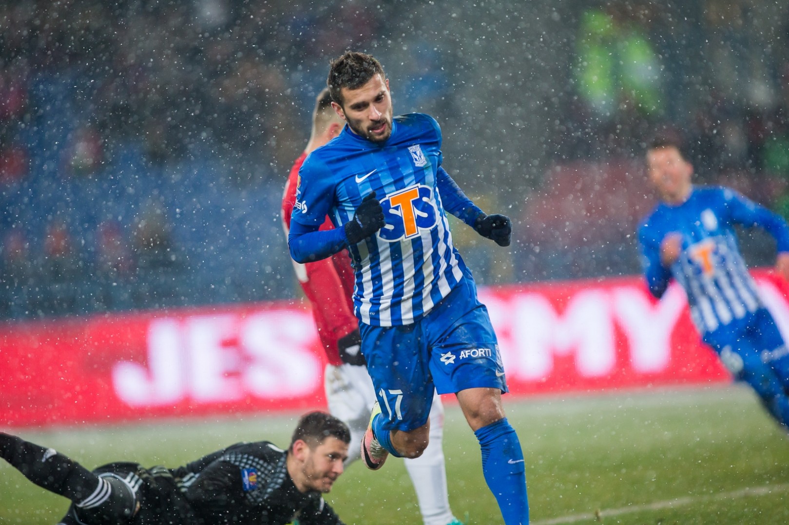 The winter weather conditions made it harder for both sides to perform at their best. A large part of the pitch was not only covered with snow, but also frozen, which resulted in slow passes and unattractive football. Lech did not begin the match well. Despite controlling the play, the team from Poznan did not cause problems to Wisla’s defense line.